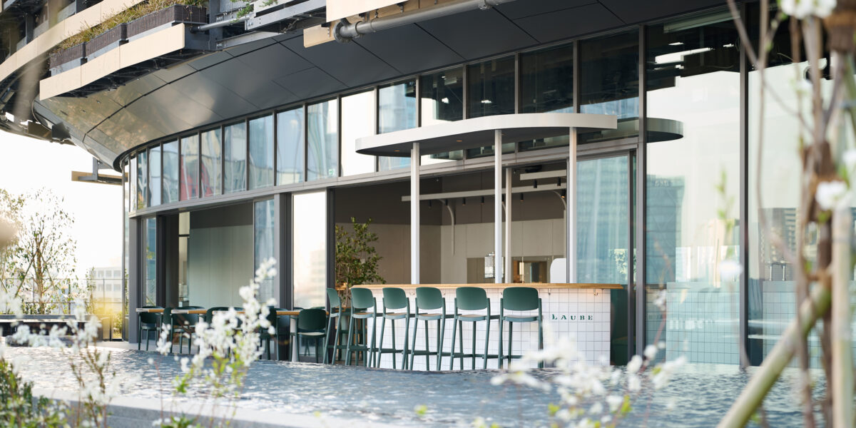 - 高輪ゲートウェイの屋上から、水面の先に新幹線が走るのを眺める。都市の息遣いと緑が溶け合うルーフトップダイニング「LAUBE」オープン。